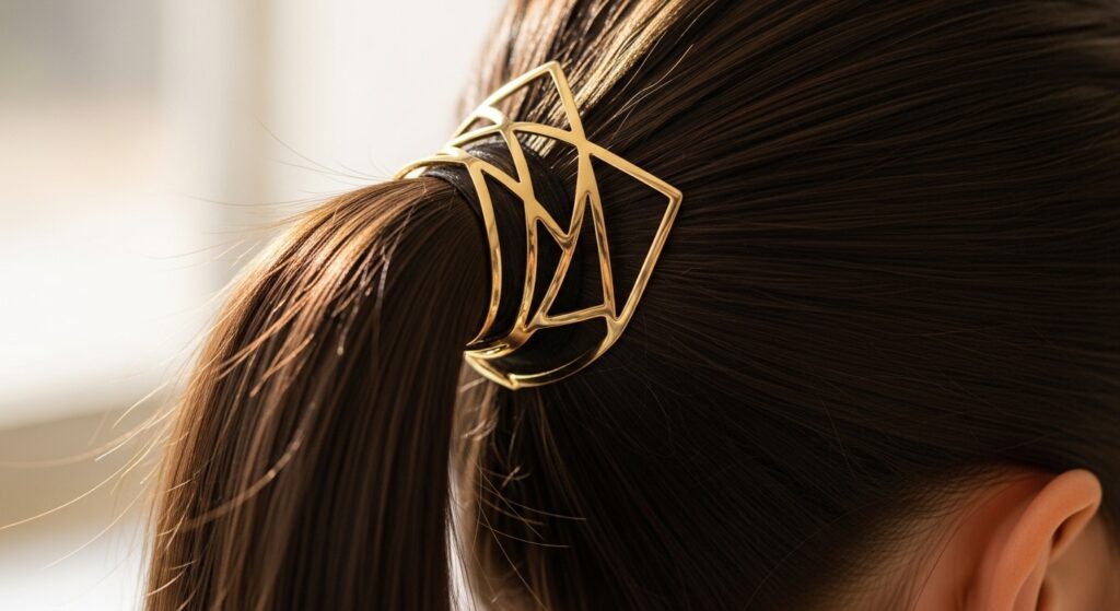 Elevate any basic pony in seconds with the right accessory. Think beyond the scarf. A sleek metal hair cuff, a few well-placed pearl pins, or a bold barrette can transform your look and align with any aesthetic, from quiet luxury to glitchy glam.