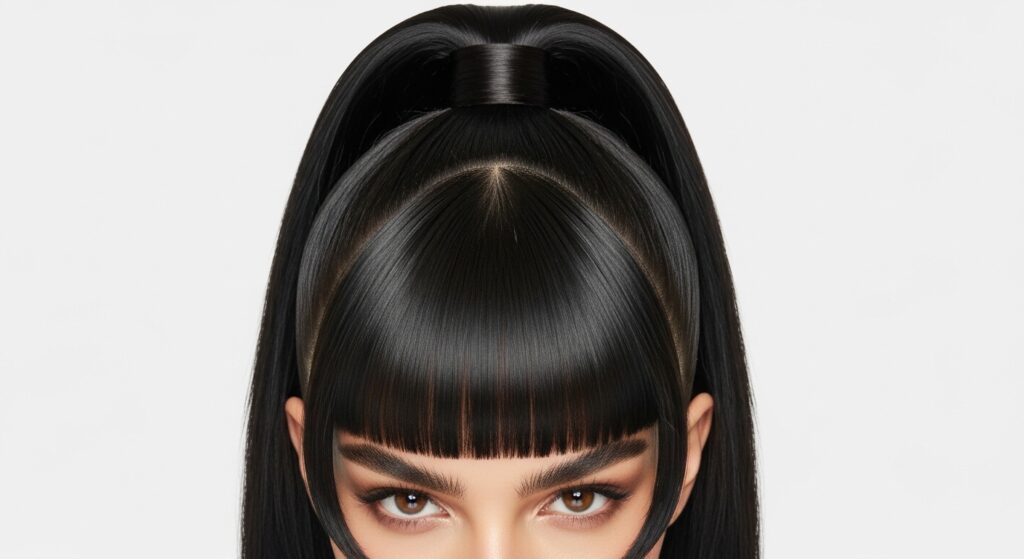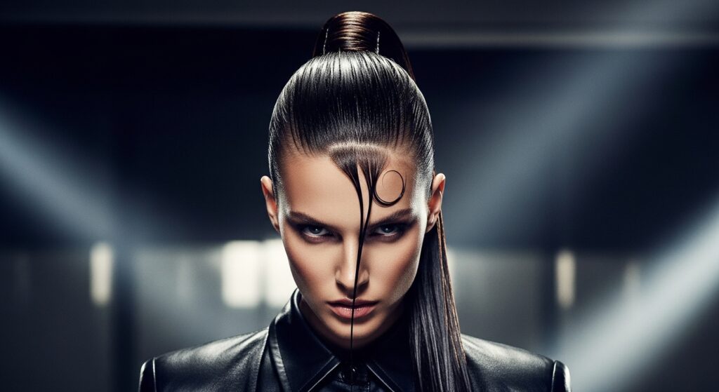 This is high-impact glamour. The wet-look pony is a major trend that aligns with glitchy glam hair aesthetics—polished with an edgy, deconstructed twist. It’s bold, modern, and commands attention.