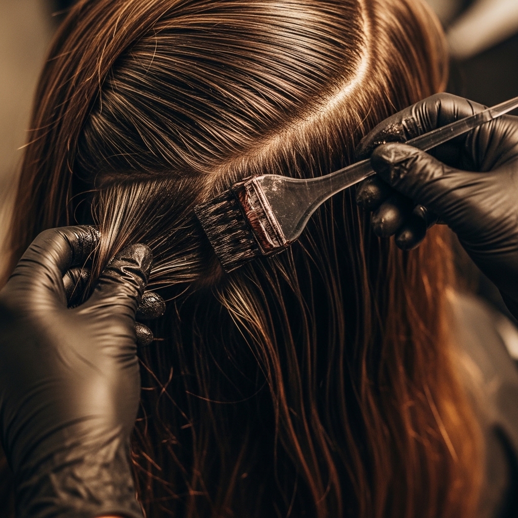 Before the lightener touches your hair, you need to establish your dark base. Mix and apply your semi or demi-permanent brunette shade all over your hair, working it through from roots to ends. This ensures an even, consistent dark canvas for the blonde stripes to contrast against.