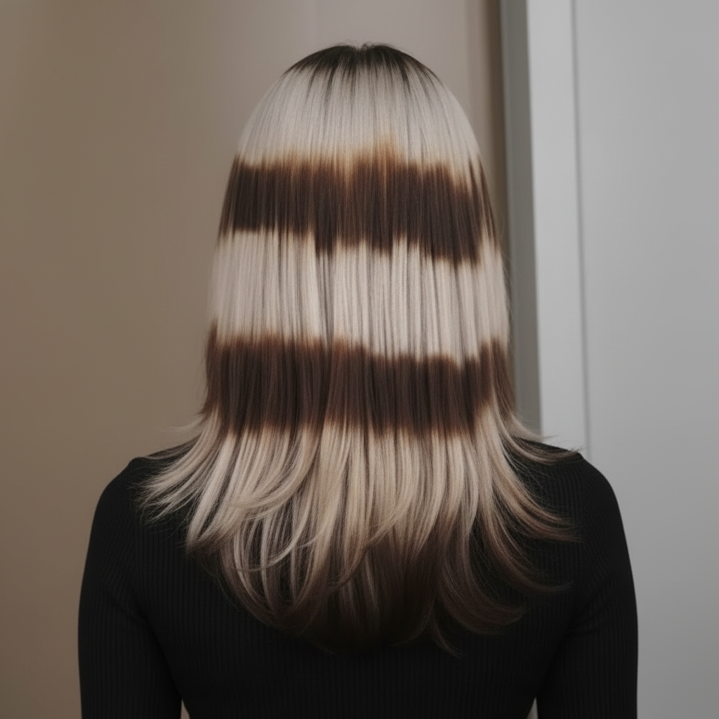 The practical takeaway for you: DIY is absolutely possible for the placement and subtle ring additions, especially if your hair is medium brown and you’re going for a ginger or warm honey result. For lifting dark hair to platinum or milk-tea blonde, the professional route is worth every penny for the health of your hair.