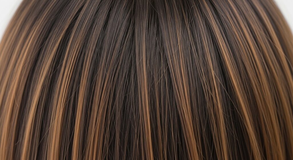 These delicate lights break up the darkness and add a subtle glow from within. It makes the overall look softer and more natural, as if the sun lightly touched the very top layers of your hair.