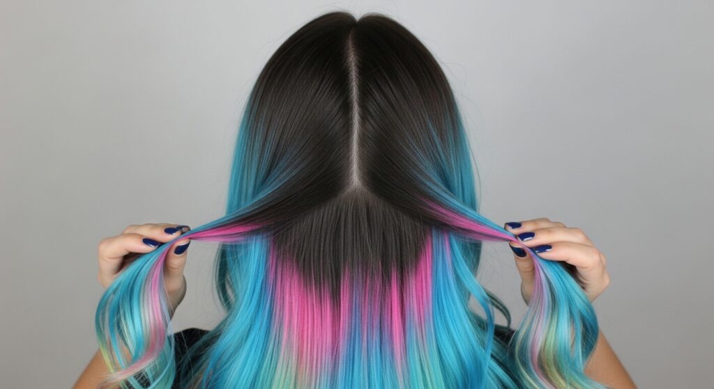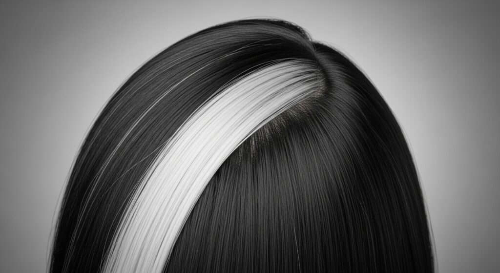 For the glitchy glam hair trend, the shadow root isn’t perfectly blended. It might have intentional, slight breaks or “glitches” where a highlight pops through abruptly at the root, or the shadow color is applied in a more graphic section.