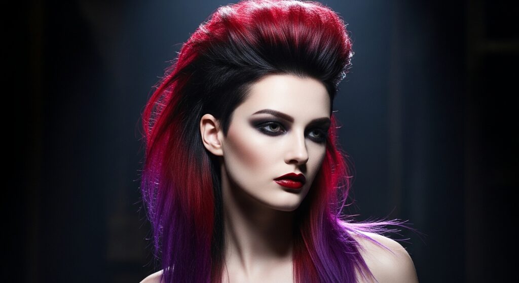 The vampire haircut (that sharp, shaggy mullet) needs a color with attitude. A deep, cool-toned shadow root (think blue-black or charcoal) melted into burgundy, violet, or silver ends is pure magic.