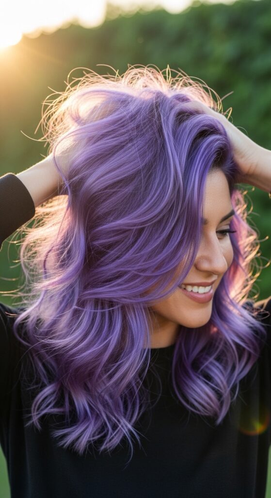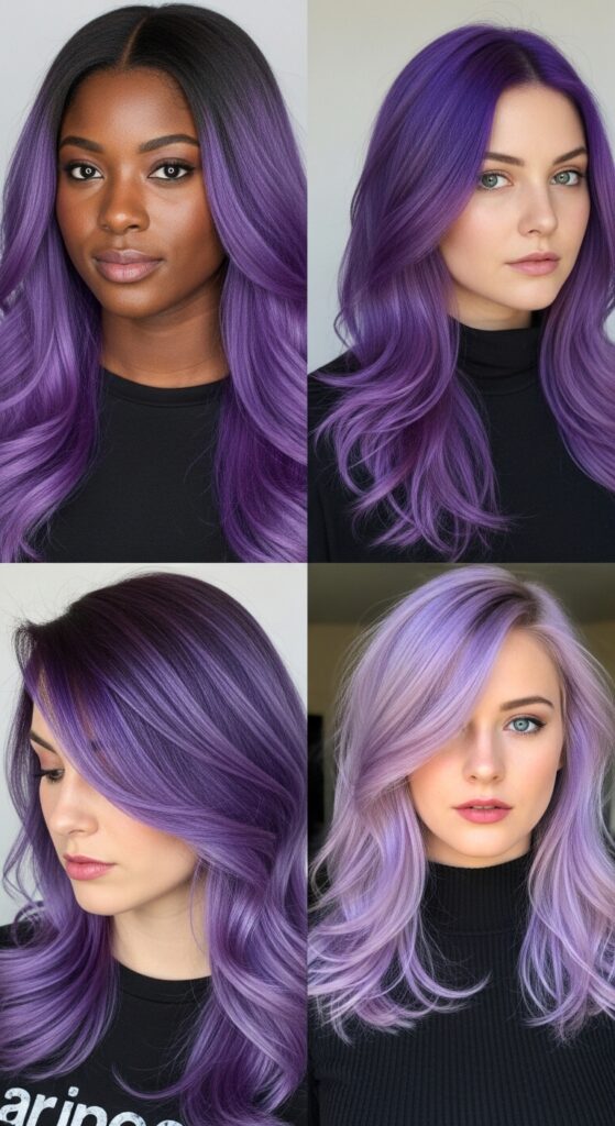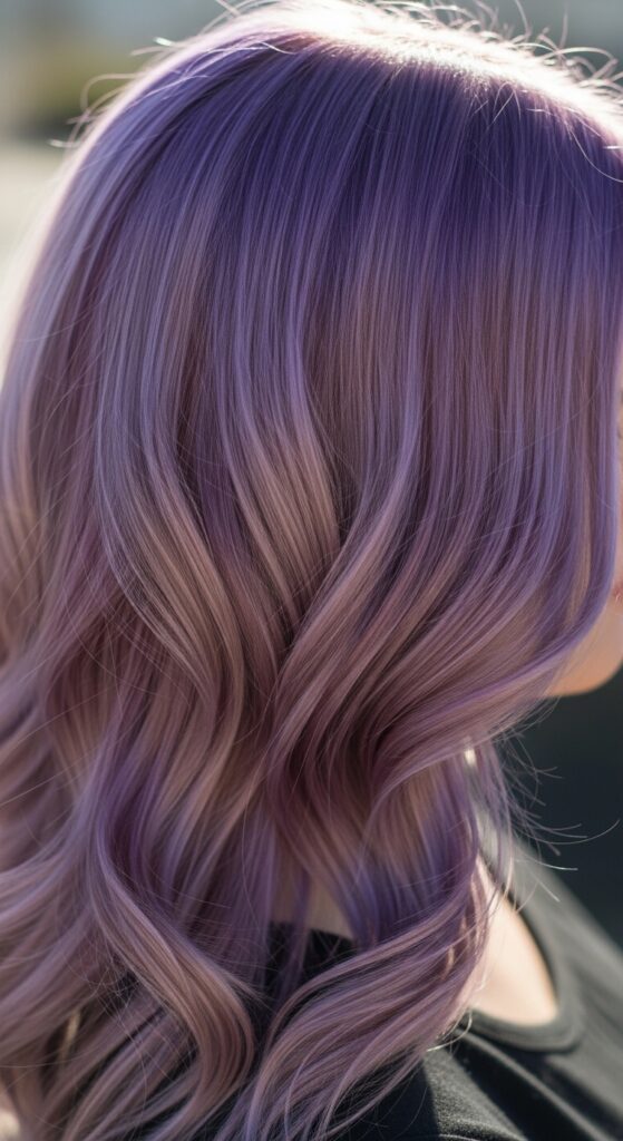 Add texture with a sea salt spray for a beachy, piecey effect, or do loose heatless curls to show off every single violet tone. Simple styles often let the color be the star, which is exactly what you want.