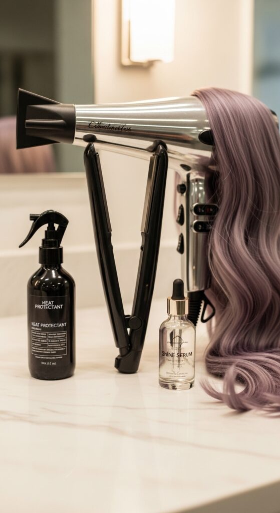 Colored hair needs protection. A heat protectant spray is non-negotiable before any hot tool use. It prevents fading and damage from styling. Look for one with UV filters too, as the sun can fade your violet tones.