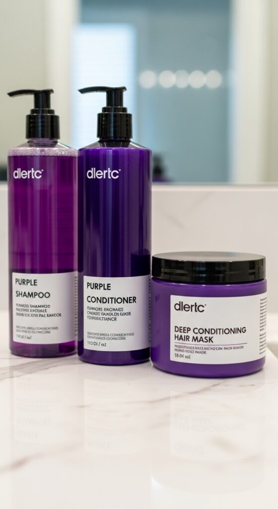 Your best friends are a good purple shampoo and conditioner. They deposit tiny amounts of violet pigment to neutralize brassy yellow tones in your lightened pieces, keeping the color cool and fresh.