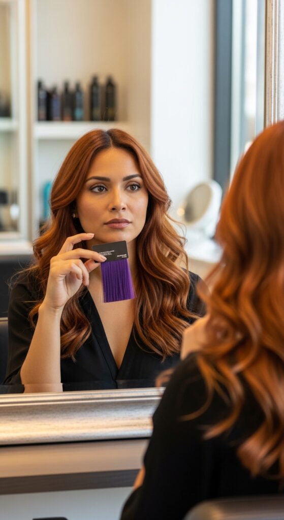 Plan on a gloss or toner refresh at the salon every 6-8 weeks to keep the violet vibrant and ashy. A full balayage touch-up will likely be needed every 4-6 months. It’s lower maintenance than all-over color, but it’s not zero.