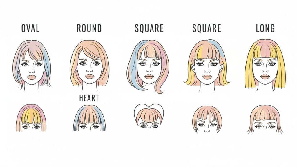 Oval Faces: You’ve hit the jackpot. Oval faces can carry off almost any bang style, and the full Bardot fringe will beautifully balance your proportions.