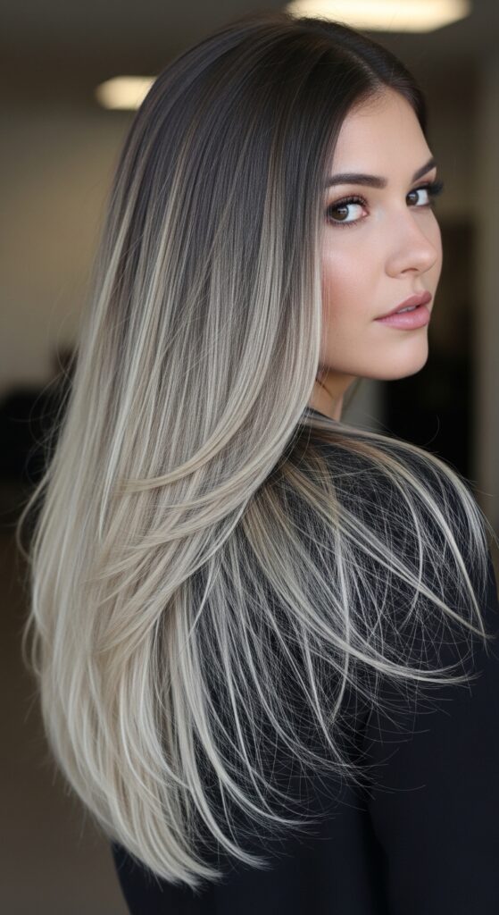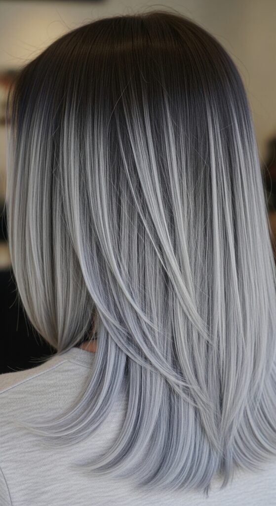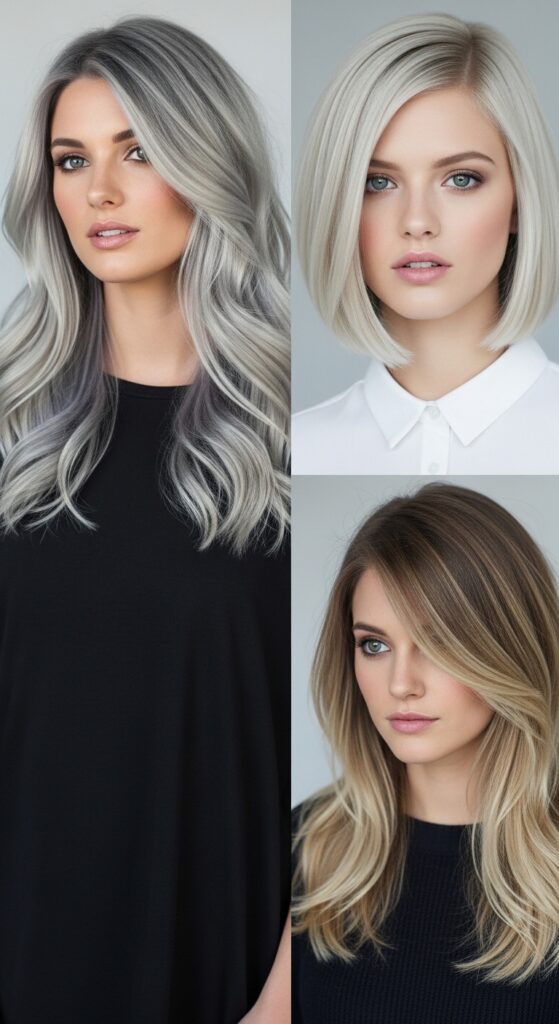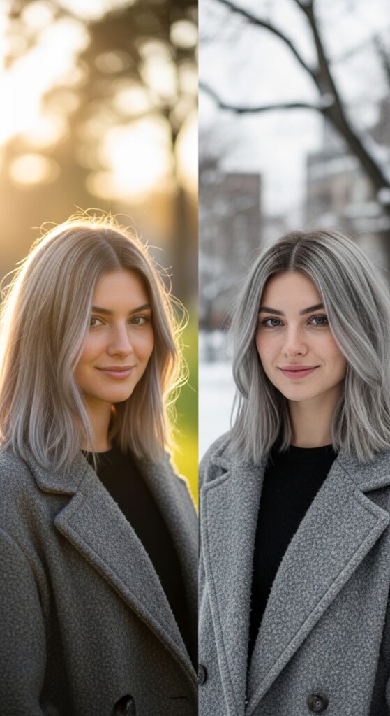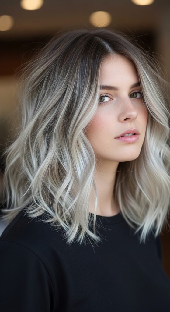 Imagine this icy blend on a sharp asymmetrical lob or a quiet luxury bob. The contrast between the precision cut and the cool color is absolute magic. It adds an edge to classic shapes.