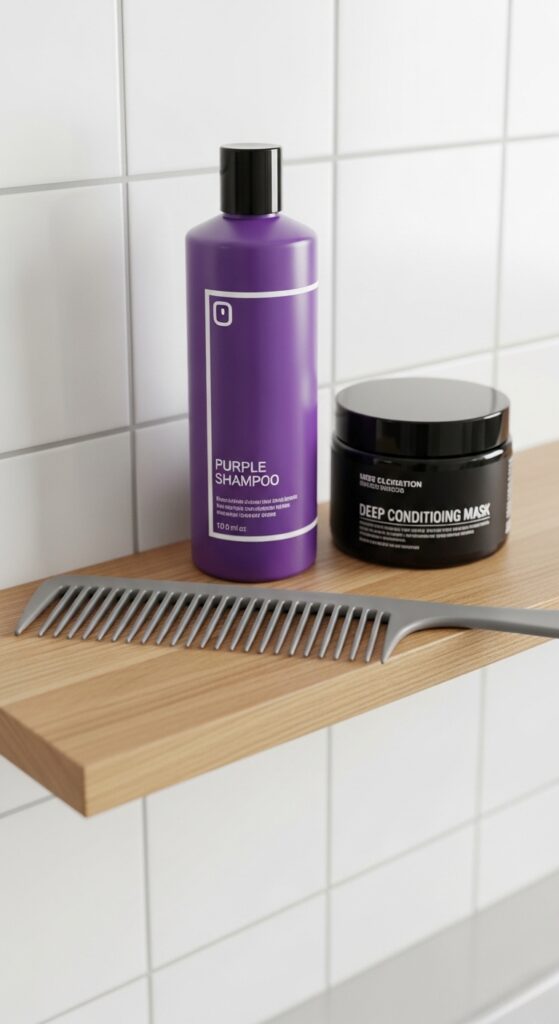 If you see yellow creeping in, don’t panic. Your purple shampoo is your first defense. For a quick fix, use a purple conditioning mask for 5 minutes.
