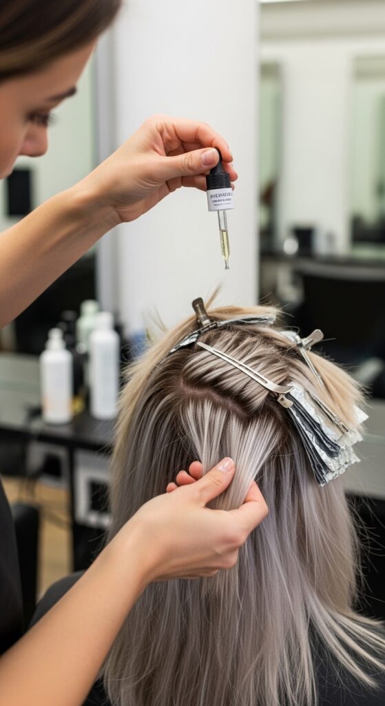 - Toning: After lightening, the crucial toner is applied to achieve the perfect ashy, icy shade.