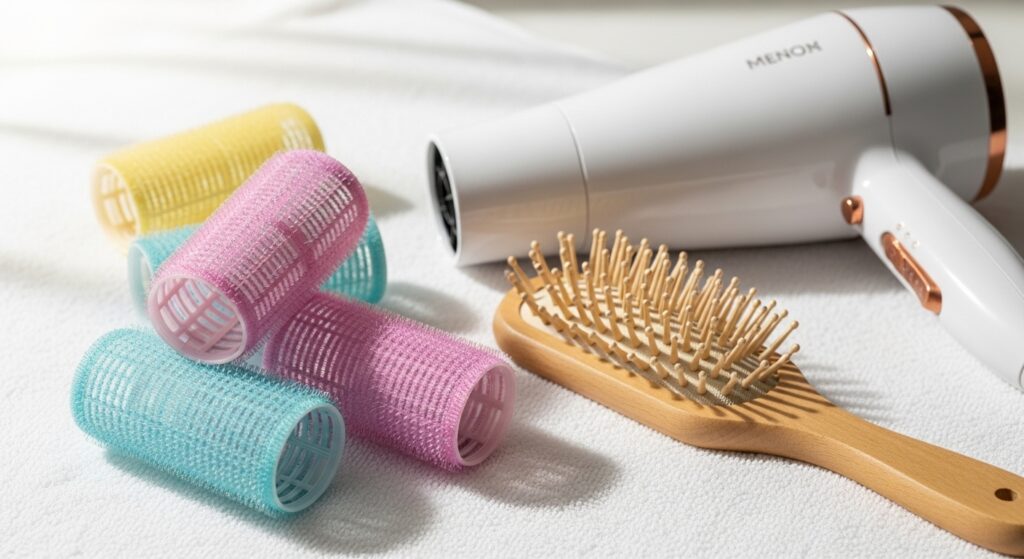 After the set, a single drop of shine serum on the ends makes everything look expensive. Finally, a flexible-hold hairspray that doesn’t make hair crunchy. These four products, combined with the roller technique, create a foolproof system for amazing hair days.