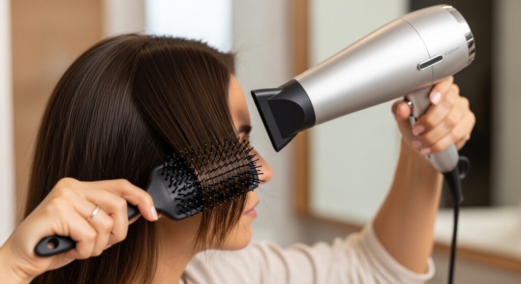 Now, protection. Spritz a heat protectant from mid-lengths to ends, and a little at the roots. This creates a barrier against the dryer’s heat. If you have fine hair, a light volumizing mousse at the roots is a miracle worker. For thicker hair, a smoothing cream on the ends will fight frizz. Prep is what makes the result last all day or night.