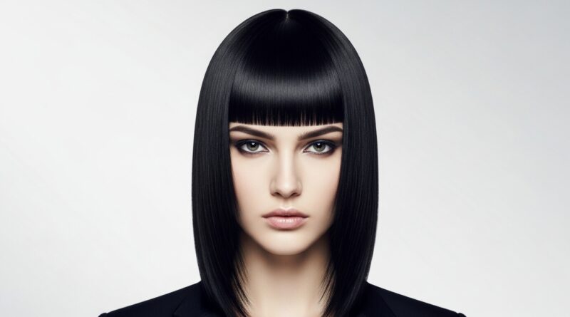 The hime cut is so graphic, and it needs sleekness with volume at the crown. Use your rollers specifically on the crown area and the long side sections. Blow-dry your blunt bangs straight down smooth.