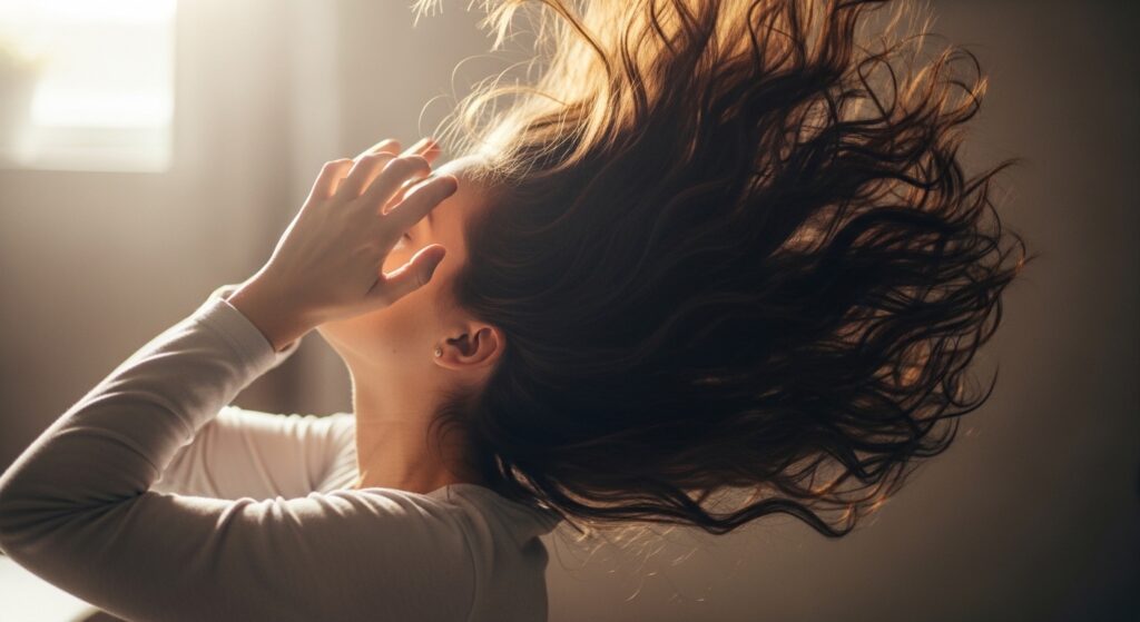 Once all rollers are out, don’t touch your hair yet! Let the curls fall and settle for a minute. You’ll see amazing volume and a head full of uniform waves. At this point, your hair has that classic “salon set” look. It might feel a bit too perfect or set. That’s exactly what we want. Now, we’re going to make it look naturally gorgeous.