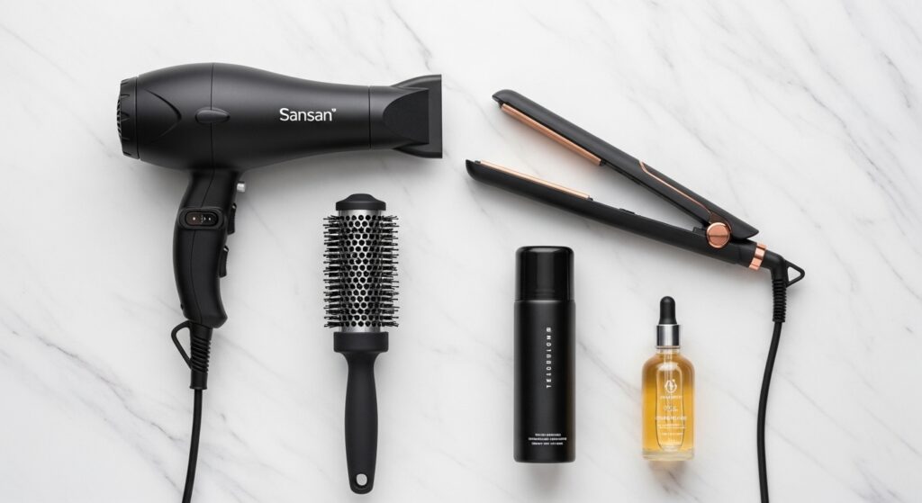 • Shine Serums/Oils: A drop of shine serum is your best friend. It tames flyaways and creates a glass-like finish that makes the blunt line pop.