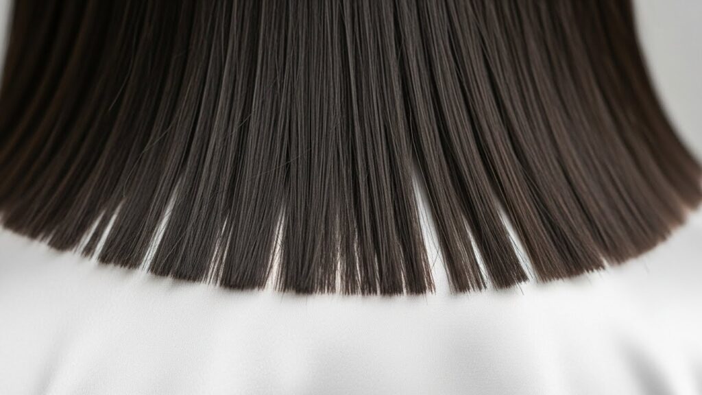 Finally, it’s surprisingly low-maintenance in style. While the cut itself requires regular trims to maintain its integrity, daily styling can be simpler. The hair naturally falls into place, and styles like sleek ponytails, braids, and buns look exceptionally polished because of the uniform length and lack of wispy layers.