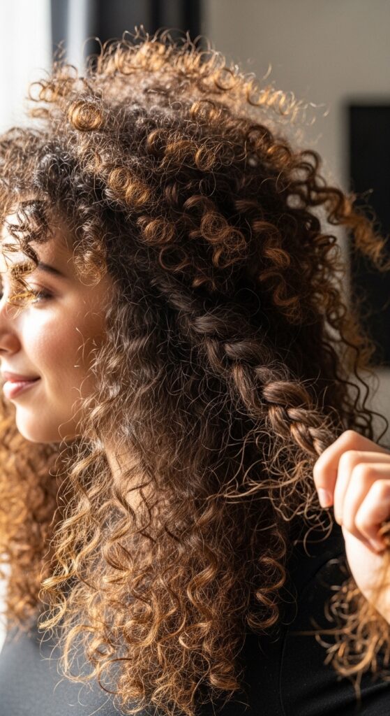 If you have a light hair oil, dab a tiny amount on your palms and smooth it over the curls to reduce frizz and add shine. The goal is texture, not perfection.