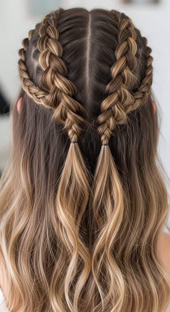 The back should look soft and messy, blending seamlessly with your two front braids. You can leave it down, or twist it into a low, loose bun for a different vibe.