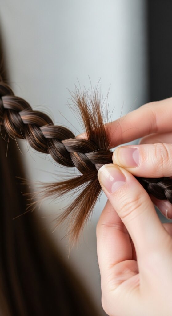 This step transforms your braids from “schoolgirl” to “boho.” Starting at the top, gently pull on the outer loops of the braid to make it wider and fuller. Work your way down to the bottom.