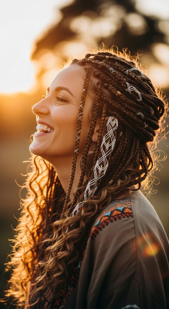 Boho braids are the ultimate versatile hairstyle. They work for a casual coffee run, a day at the office, or even a fancy dinner. They give you that “I woke up like this” chic without the actual effort.