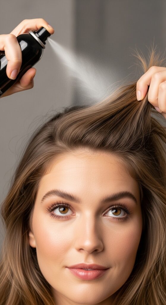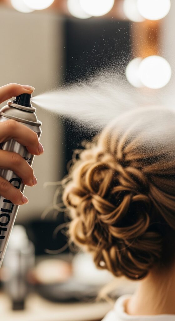 Finish with a light mist of flexible-hold hairspray from about 12 inches away. This locks in the style without making it look crunchy or stiff.