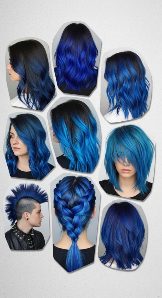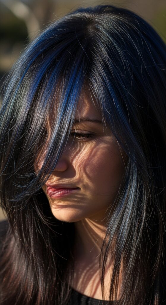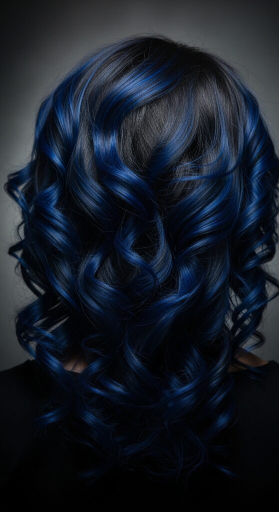 Think of it like the night sky in your hair. Pair it with dark lipstick and lace. The blue adds a mystical, otherworldly element to the look.