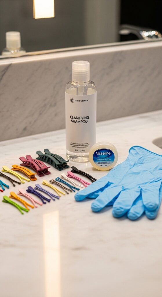 Dry your hair about 80% so it’s damp, not soaking. This helps the color absorb evenly. Section your hair with clips for thorough application.