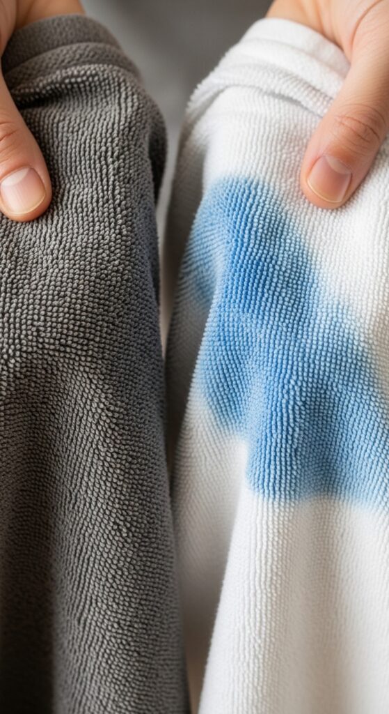 It may also temporarily stain your towels and pillowcases. Use dark-colored ones you don’t mind getting tinted.