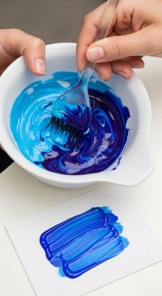 Always mix from the same brand to ensure formula compatibility. Use a hair color brush and keep notes on your ratios.