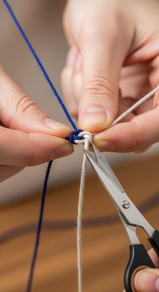 This is the most important step. Take the two tails of thread and tie them together in a tight, double knot right against the twist. Pull hard to ensure it’s secure.