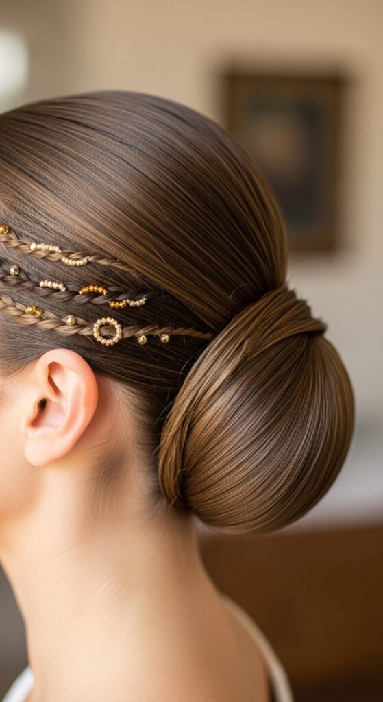Your new beads are accessories, so style with them in mind! A high ponytail will show them off beautifully. For a more old money hair vibe, try a low, elegant chignon, letting a few beaded twists escape near your ears.