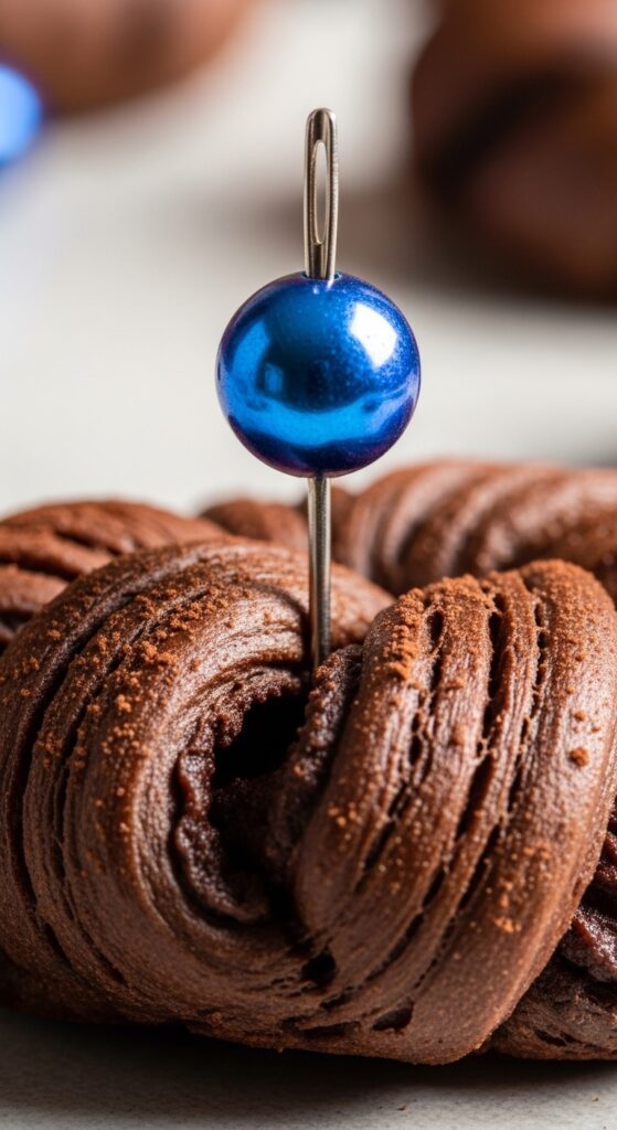Hold your chosen twist firmly between your fingers. Take your needle and gently pierce through the center of the twist, right at your chosen spot. Be careful not to pierce your own finger! Go slowly.