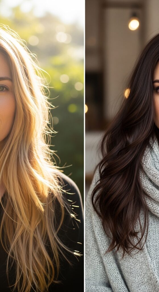 In winter, ask your stylist to add more deep, neutral bronze and brown tones. It will feel richer and cozier, complementing sweater weather perfectly.