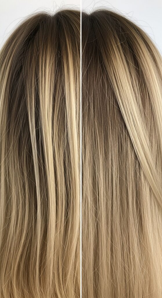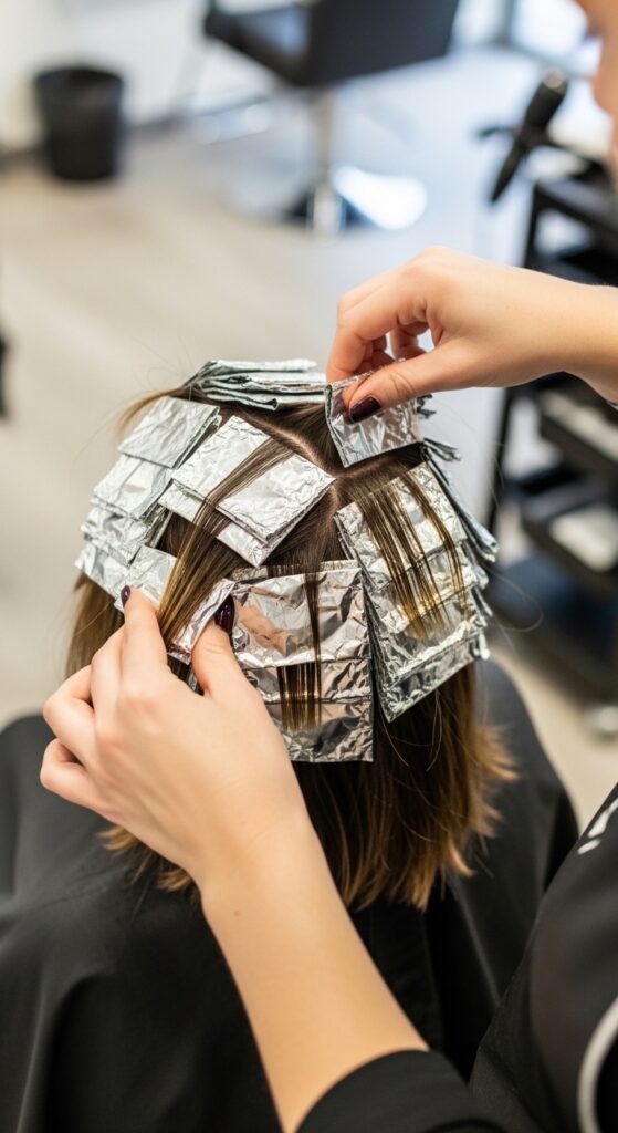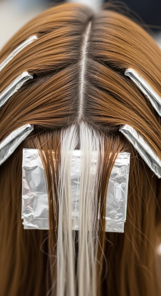 Emphasize you want soft, irregular ribbons, not uniform highlights. Mention “dimensional” and “metallic sheen.” This gives your colorist the perfect creative brief.