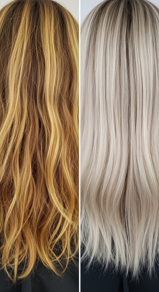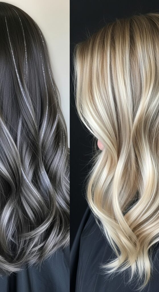 This technique uses a high-lift lightener to get that ultra-pale, cool canvas, then often a toner or direct dye to perfect the silver shade. The result is a dimensional, eye-catching style that plays with light differently than any caramel or honey highlight could.
