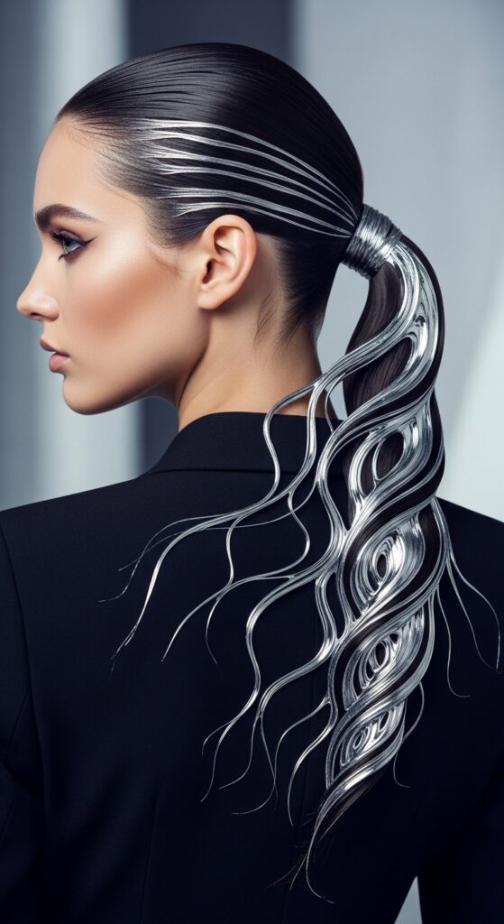That’s where metallic mercury streaks come in. This isn’t your average blonde. It’s a cool, shimmering, almost liquid metal effect that adds instant dimension and a seriously modern vibe to any cut.