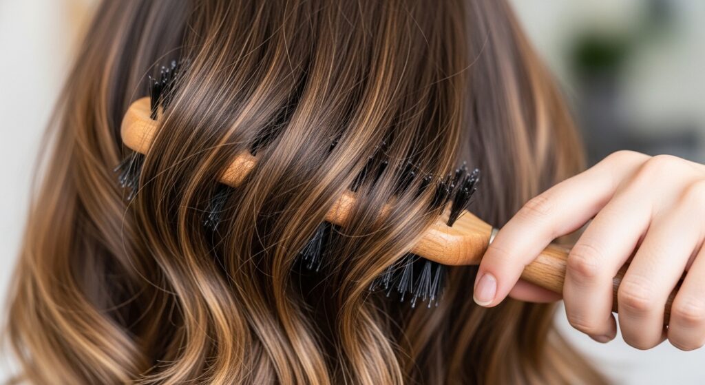 Use a boar bristle brush if you have one, as it’s great for distributing natural oils and product evenly without causing static.