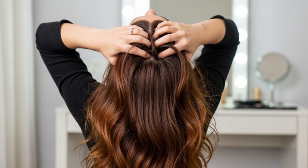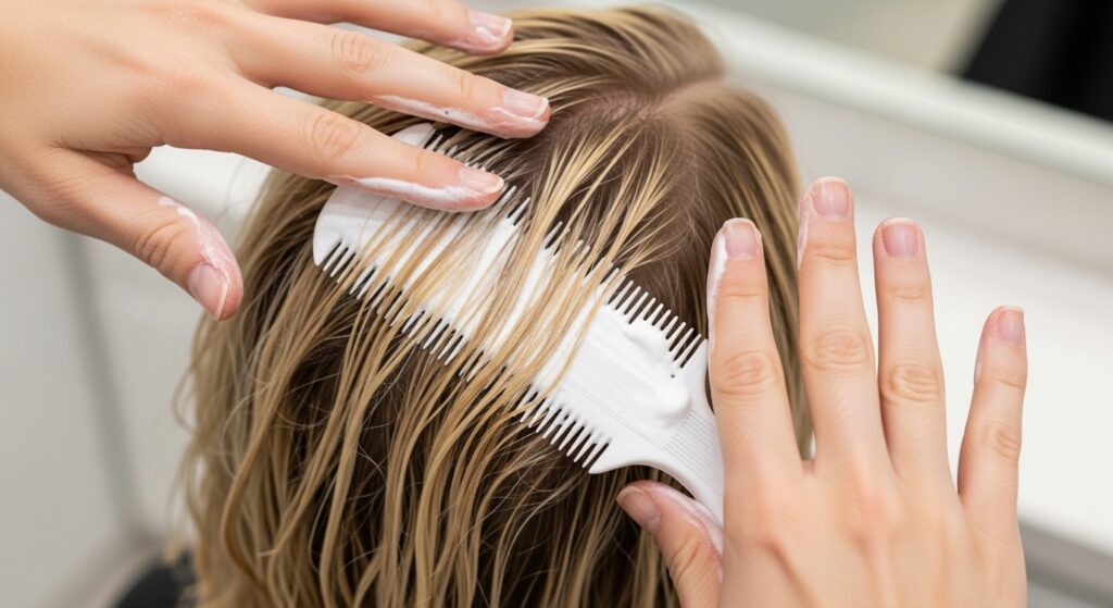 Apply your chosen mousse or cream to each section separately, using a raking motion with your fingers to coat evenly from mid-lengths to ends. This guarantees no slippery strand gets left behind.