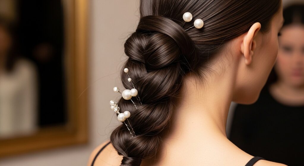 Accessorize with a few delicate pearl pins tucked near the base or a sparkly clip. It transforms the look into something truly elegant and red-carpet worthy.