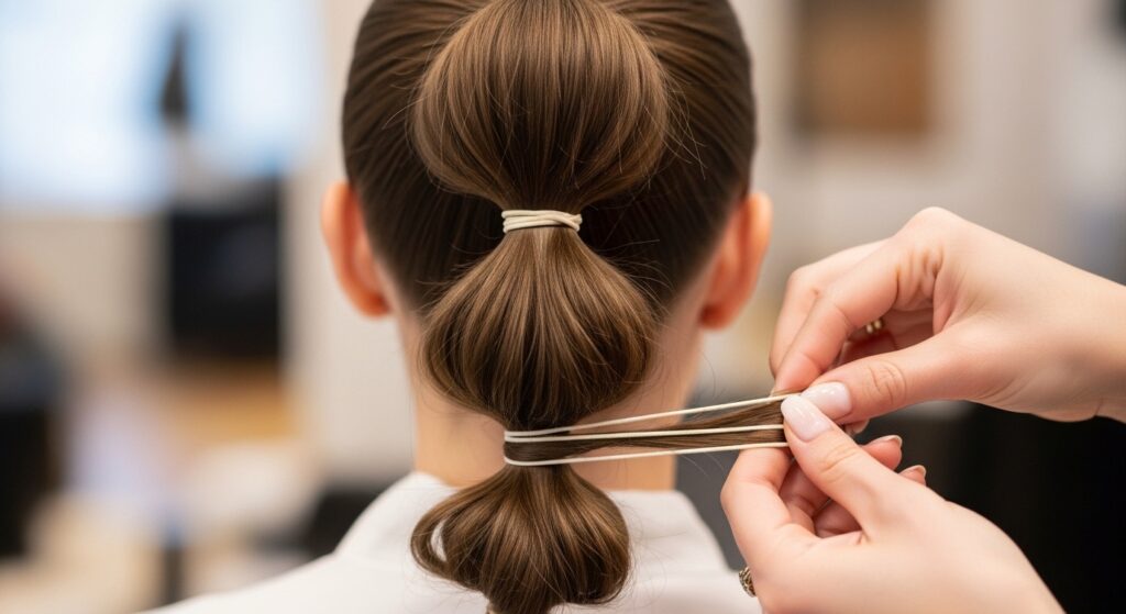 Make sure it’s snug, but don’t strangle the hair. You want it tight enough to hold, but loose enough that you can adjust the bubble later. This is where you start building the structure.