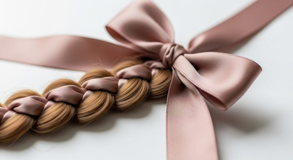 As you add elastics down the braid, the ribbon gets woven in, creating a beautiful, woven effect. It screams special occasion.