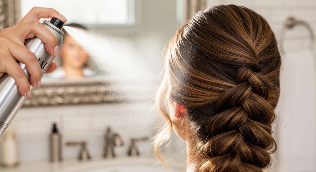 To make your bubbles last all day, a light mist of flexible-hold hairspray is your best friend. Hold the can about 10 inches away and give the whole style a quick spray.