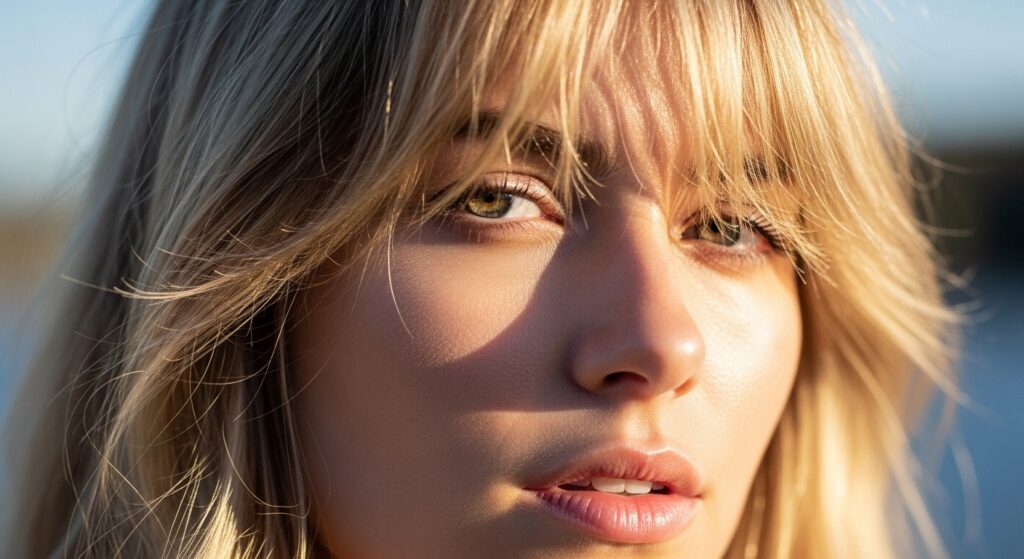 The beauty of this fringe is that it requires minimal styling to look perfect. Over-styling can actually take away the effortless essence. Start with nearly dry or damp hair. Use a round brush and a blow dryer to guide the bangs into place, directing the center downward and the sides slightly outward. The goal isn’t pin-straight perfection but rather to encourage their natural shape.