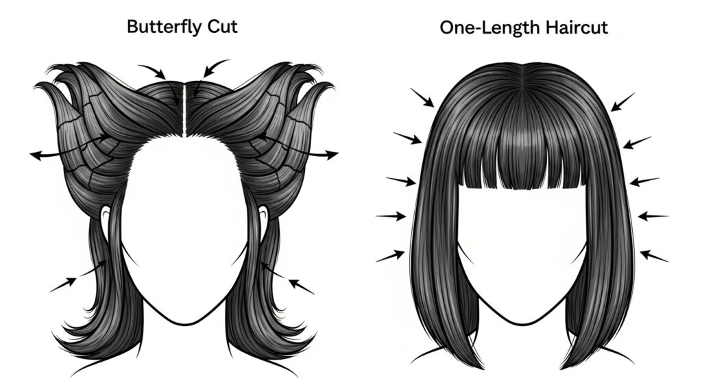 Considerations for Thick or Curly Hair: If you have very thick, coarse, or tightly curled hair, a classic butterfly cut might create too much volume or become unmanageable. However, a skilled stylist can adapt the technique. For thick hair, they may focus on longer, more subdued layers to remove bulk without creating a triangular shape. For curly hair, a dry-cut version can ensure the layers work with the curl pattern to create a gorgeous, rounded shape.