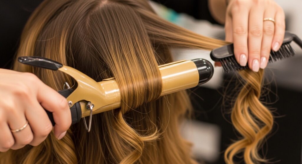 - A 1.25-inch to 1.5-inch barrel curling iron (this gives the perfect wave size).