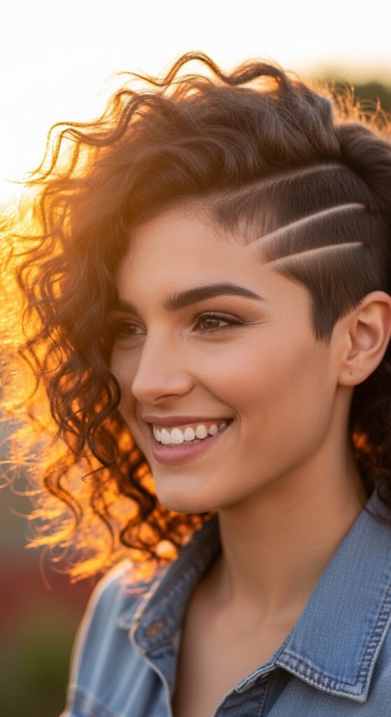 This look is artistic and fun. It shows off the versatility of your hair and the zigzag part acts as the clear boundary between the two textures, making the style look deliberate and cool.