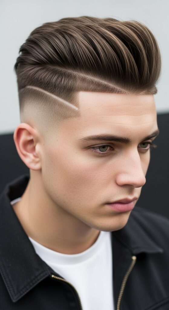 Ask your barber to trim or define the part. Use a matte paste or pomade to style the top, emphasizing the separation. It’s a clean, sharp look that upgrades any men’s cut with minimal effort.