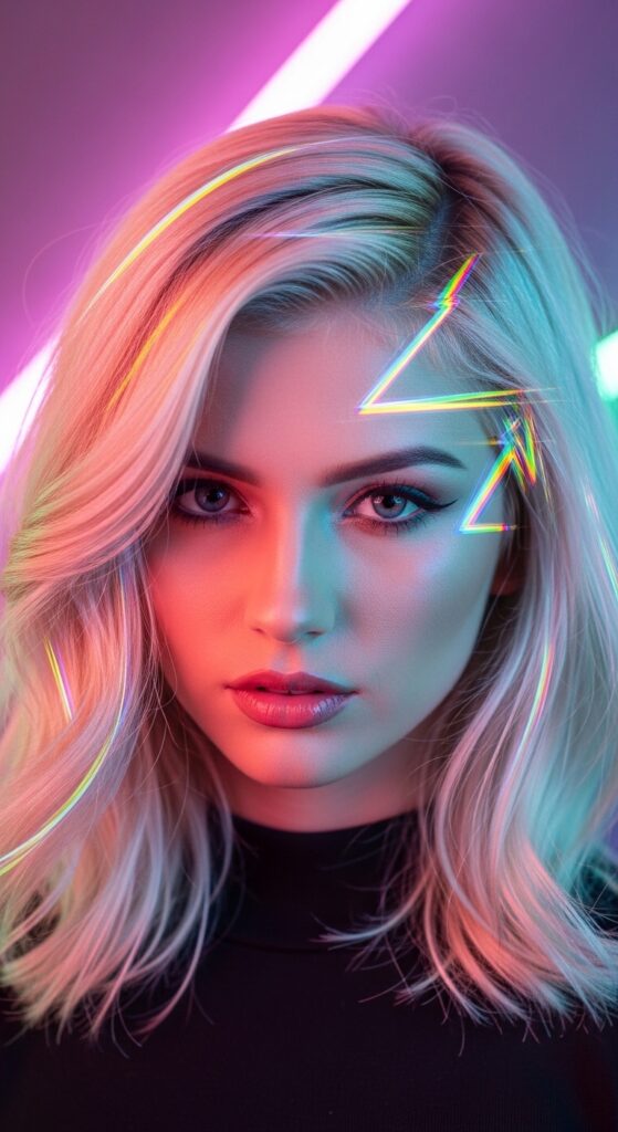 Glitchy glam hair is all about digital-age distortion. Pair a severe zigzag part with contrasting highlights or money pieces. The zigzag acts like a glitch in the system, disrupting the flow of color in the coolest way.