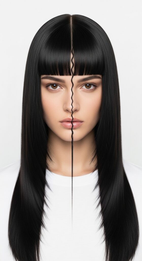 This look demands precision. Flat-iron the long sections bone-straight. The zigzag part will create a striking, almost architectural frame for your face. It’s a conversation-starting look that honors the cut’s tradition while pushing it forward.